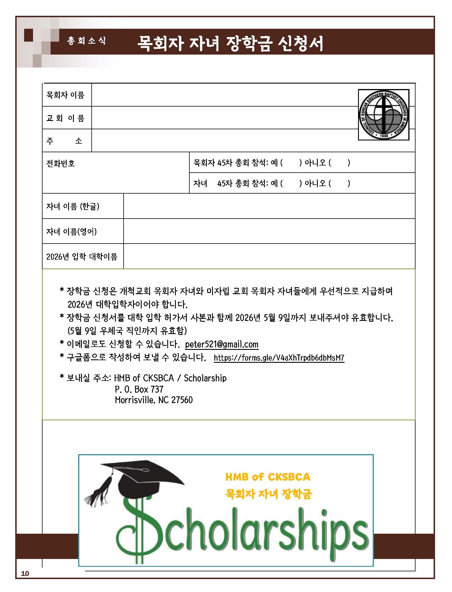 PK Seminary Student Scholarship (목회자 자녀 신학생 장학금)