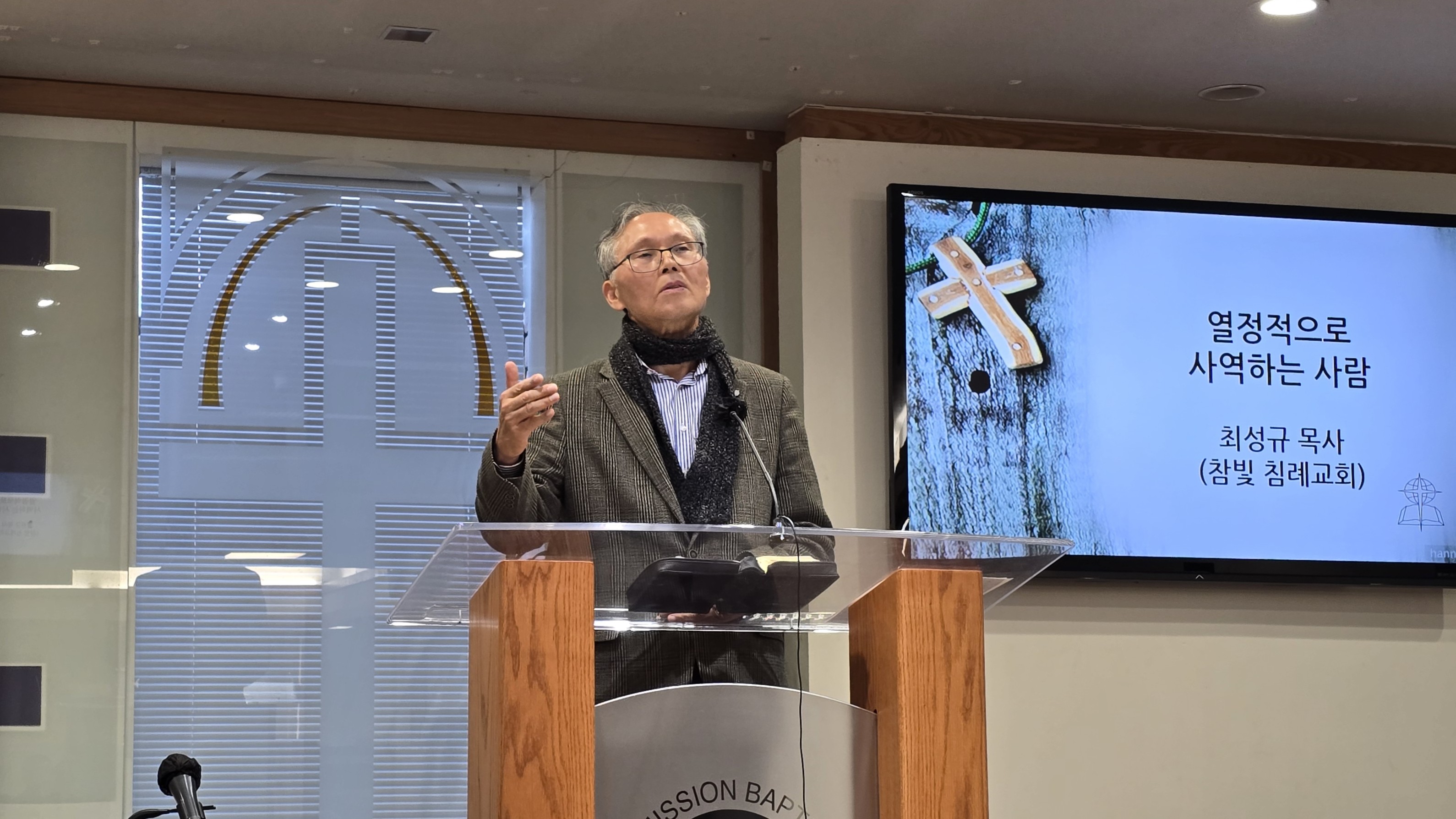 1부 예배는 안경렬 목사(임마누엘 교회)의 기도로 시작되었고, 찬양인도는 신태균 목사(주님의 한빛교회)가 섬겼다. 이어서 최성규 목사(참빛침례교회)는 “열정적으로 사역하는 사람” 이라는 제목으로 말씀을 전하며 새해를 맞아 목회자들이 복음의 사역을 열정적으로 감당할 것을 도전하며 은혜 가운데 말씀을 전하였다. 예배는 고상환 목사(세계선교침례교회) 축도로 은혜롭게 마무리되었다.