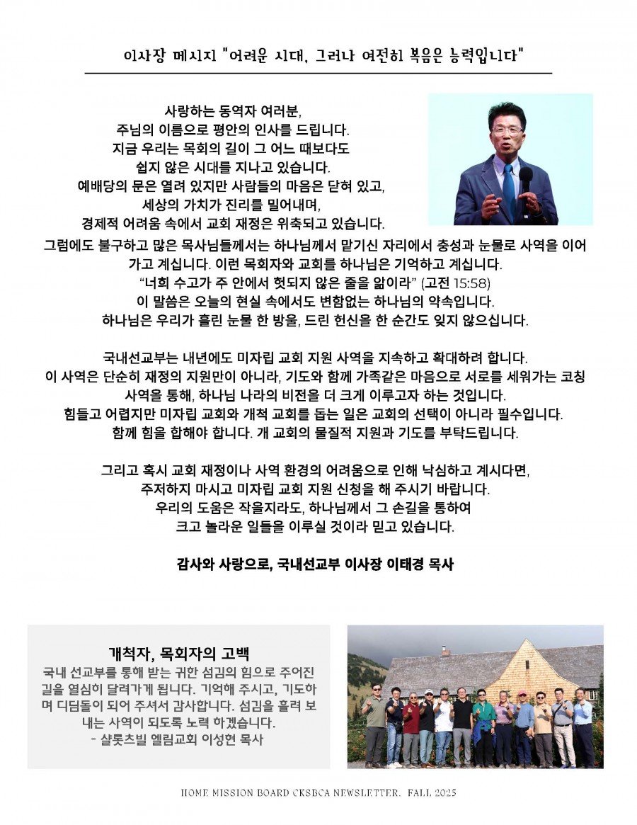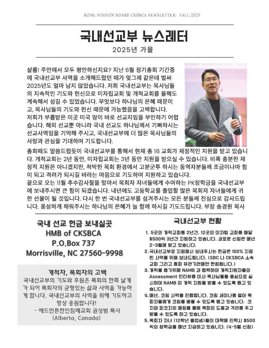 2025년 11월 국내선교주일에 함께 동참하십시오!
