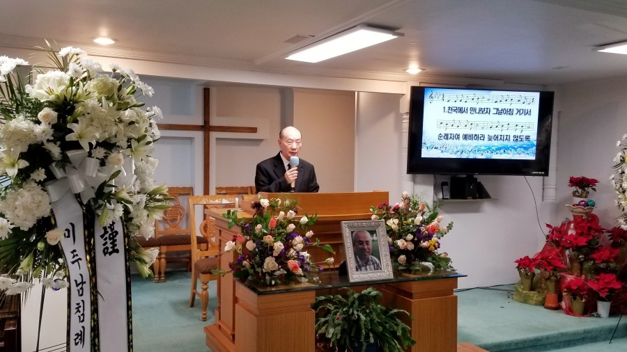 MD&DE 지방회 회장이신 윤병남목사(풍성한교회)의 인도로 진행된 예배는 고인이 생전에 즐겨 부르던 행군 나팔 소리로찬송가로 시작되었고 문석원목사의 기도로 이어졌다. 평소에 본인의 장례식은 기쁘고 즐거운 날이 되어야 한다고 강조하였고 검은 옷을 입지 말고 기쁘게 자신을 환송해 달라고 했다고 한다.