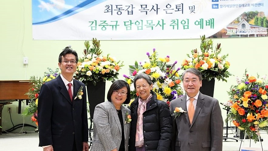 랄리 제일한인침례교회는 지난 12월 27일(주일) 오전 11시에 담임목사 이취임 예배를 드렸다. 이취임 예배는 주일예배, 은퇴식, 취임식 순서로 진행되었다. 지난 19년간 제 2대 담임목사로 수고하신 최동갑목사가 은퇴하시고 제 3대 담임목사로 김중규목사가 취임하였다.