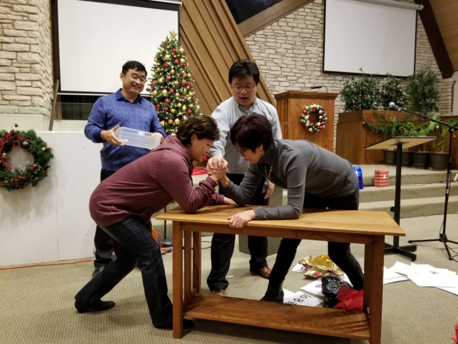 예배 후에 이어진 송년 모임은 재미있는 레크리에이션 시간과 선물 교환 순서가 있었다. 개그맨을 능가하는 윤효원 목사(하이드팍 침례교회)의 인도로 진행되어 밤 10시까지 시간 가는 줄 모르고 모든 스트레스를 다 날려버리는 시간이었다.