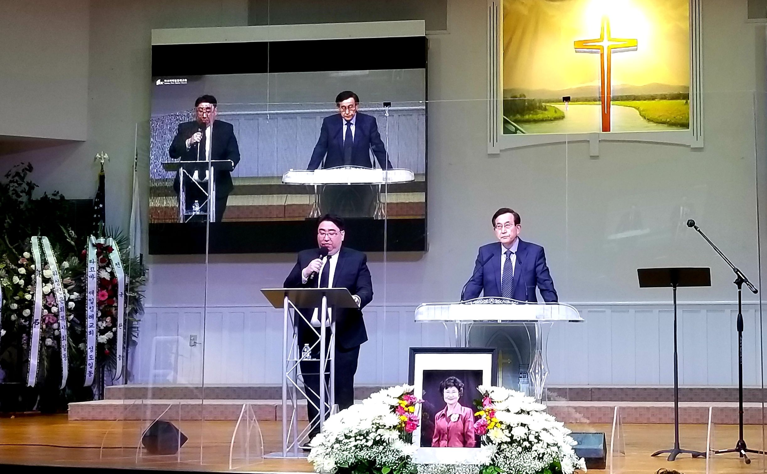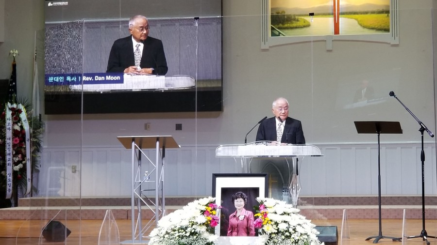 지난 5월 17일에 주님의 부름을 받고 소천하신 고 문성주 사모(타코마 제일침례교회 문창선 원로목사 사모)의 천국환송예배가 5월 21일(금) 오전 10시에 타코마제일침례교회 본당에서 교회장으로 있었다. 남궁곤목사(본교회 부목사)의 사회로 시작된 천국환송예배에 본당을 가득 채운 (거리 두기 준수함) 성도들과 지역교회 목회자들이 참석하였다. 본 교회의 토레스목사(영어부)의 기도와 유혁동목사(시애틀 제일침례교회)의 조가에 이어 서북미협의회(지방회) 회장인 정융교목사(새시온침례교회)가 아가 2:10-13 본문으로 “사랑하는 자여 일어나 함께 가자”라는 제목의 말씀을 전하여, 고인을 기억하며 천국의 소망을 전했다.