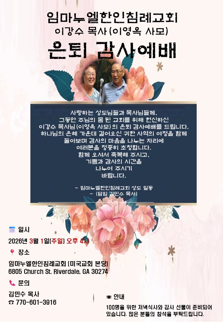 문의: 김민수 목사 770-601-3916