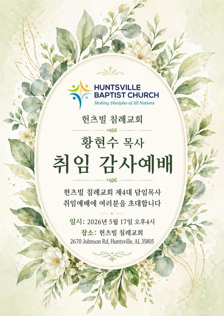 헌츠빌침례교회 황현수 담임목사 취임감사예배