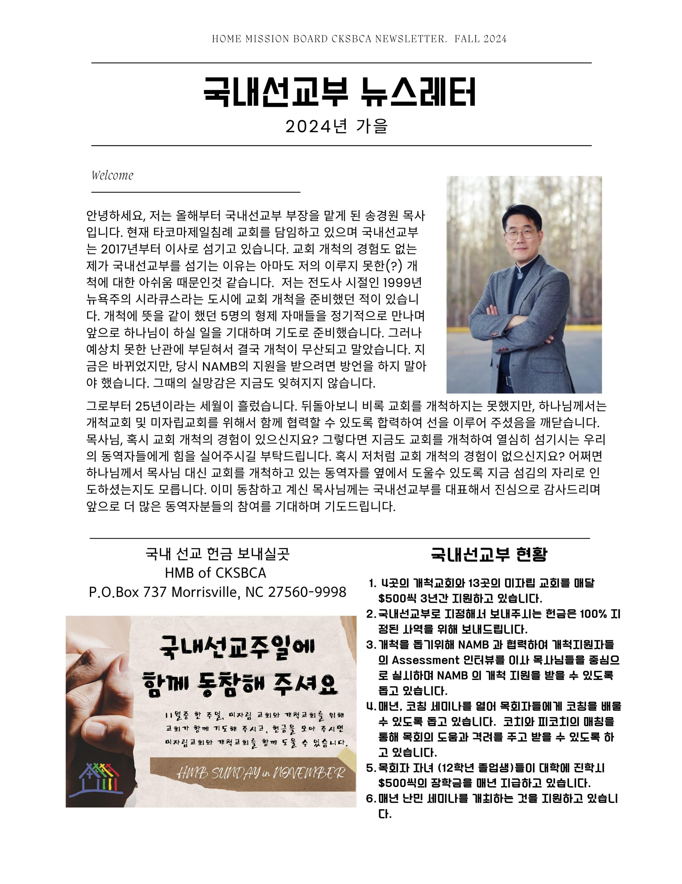 (FL) 게인스빌 한인교회 부목사 초빙 공고