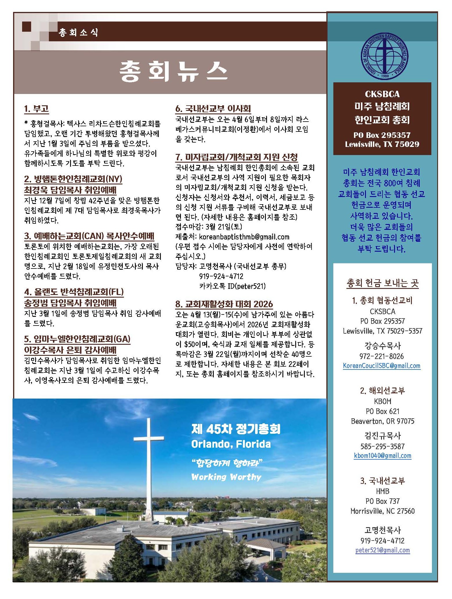 제 45차 정기총회 공고 및 뉴스레터 (2026년 3월)
