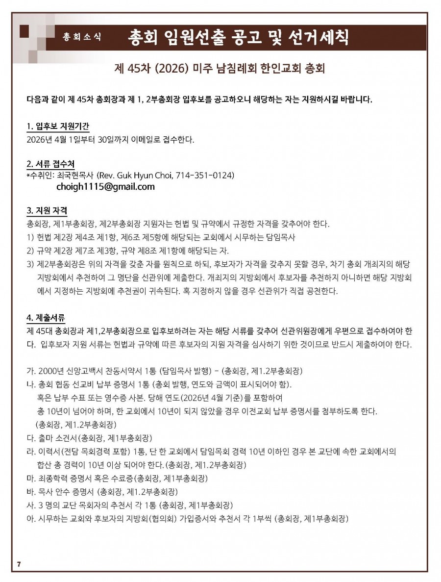 2025년 총회장 & 제 1부총회장 후보